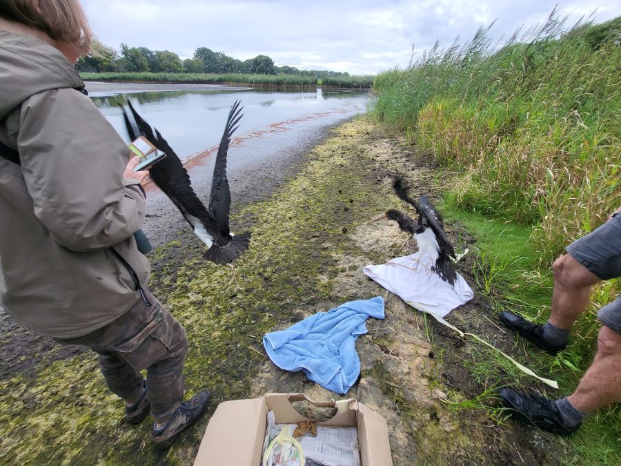 09.08.2024: Rieselfelder Bs (GB,VJ) | 09.08.2024, Auswilderung des Nabu ASZ Leiferde, Pflegling 2024 aus Nds, weißer Farbring links siehe unten: |